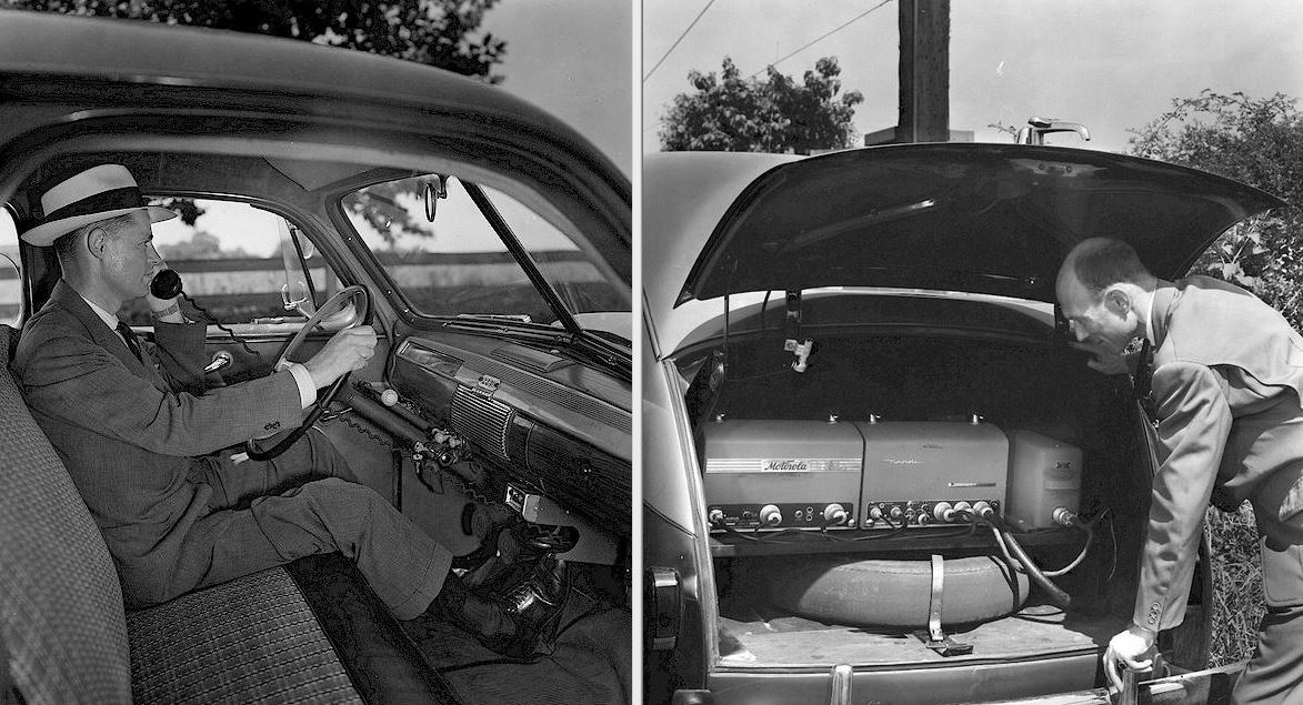 (ANOS 50) AMERICANO TESTANDO SEU "CELULAR" NO CARRO