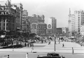 Logradouros de SÃO PAULO nos anos 50 com seus carrões (importados, é claro) e transeuntes "na estica".